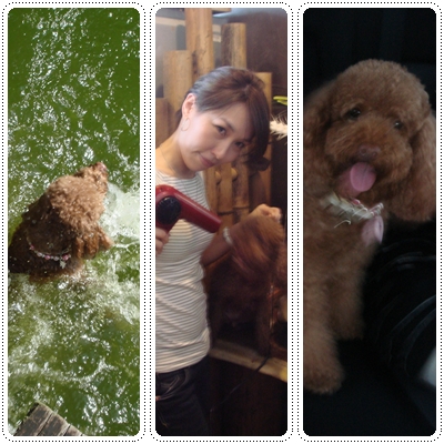 ((RERE看到Sugar落水嚇死了~還馬上衝回去叫他媽抱!真的是膽小狗耶!!))