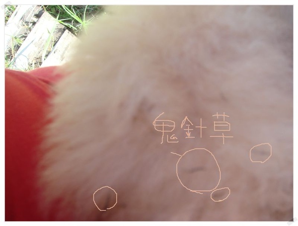 玩太瘋~粘了一堆鬼針草回來~