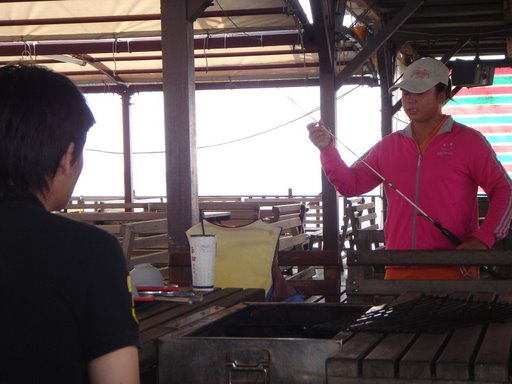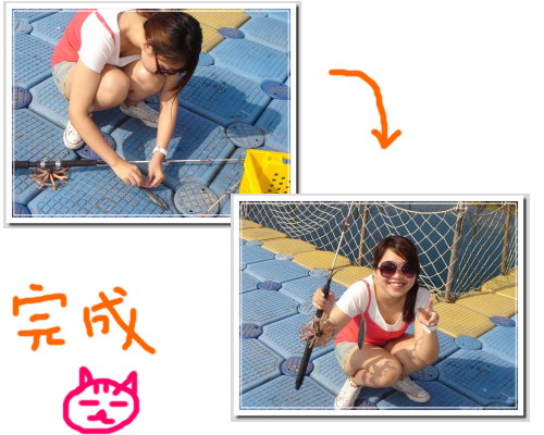 "綁"魚餌後就可以釣啦!??????????????(此時我內心充滿疑問呀!)